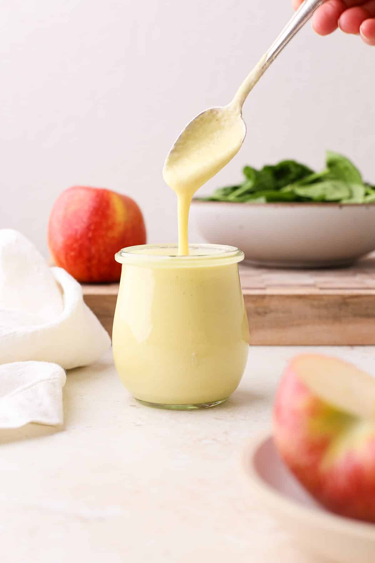 • Blend. Add all the dressing ingredients to a blender. Blend until smooth and season to taste with kosher salt. If your apple is more tart, add one to two teaspoons of maple syrup or honey.