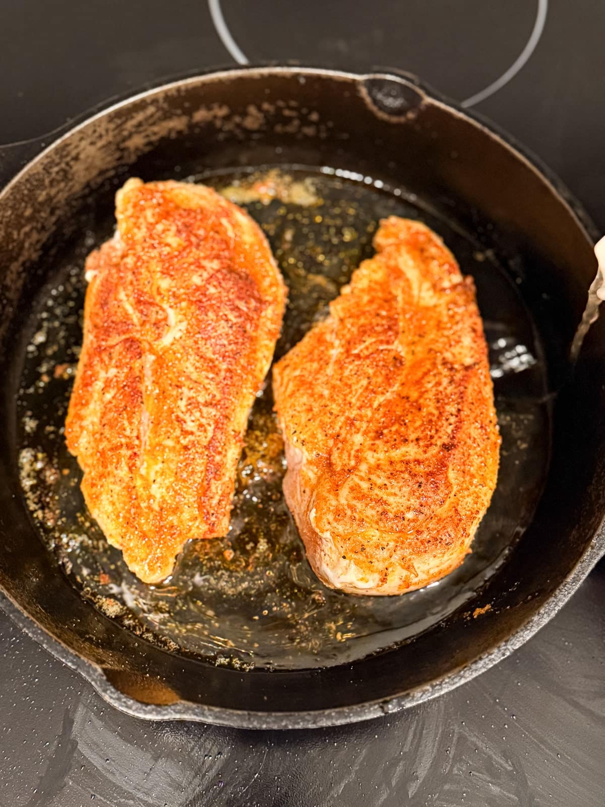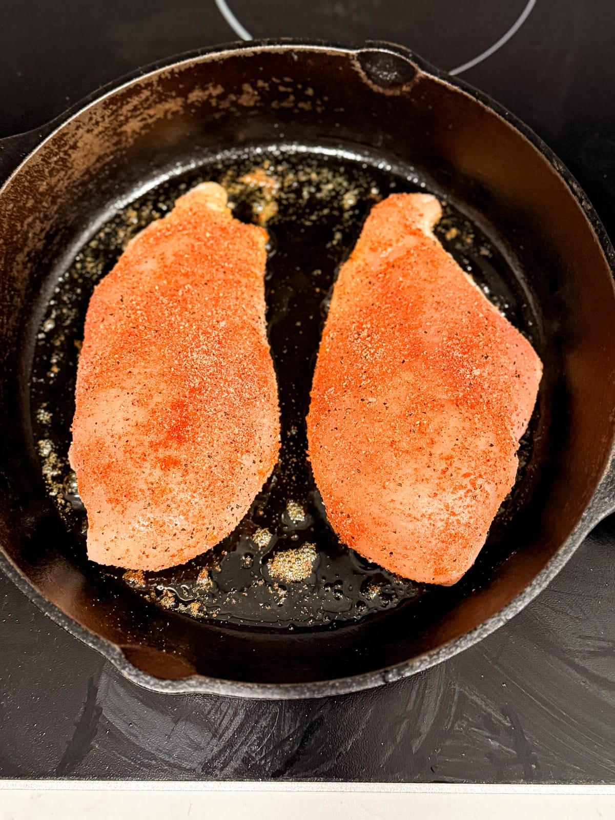- Season chicken. In a small bowl whisk together the seasonings then sprinkle them onto both sides of the chicken, lightly pressing them in with your hands.