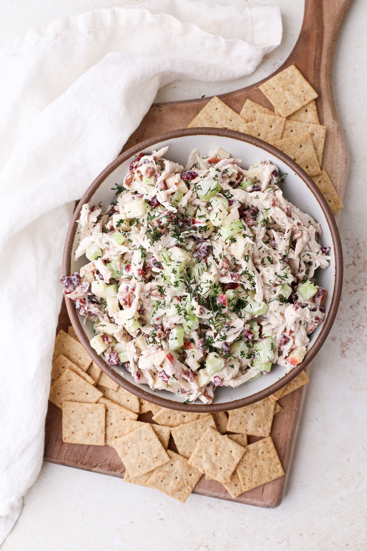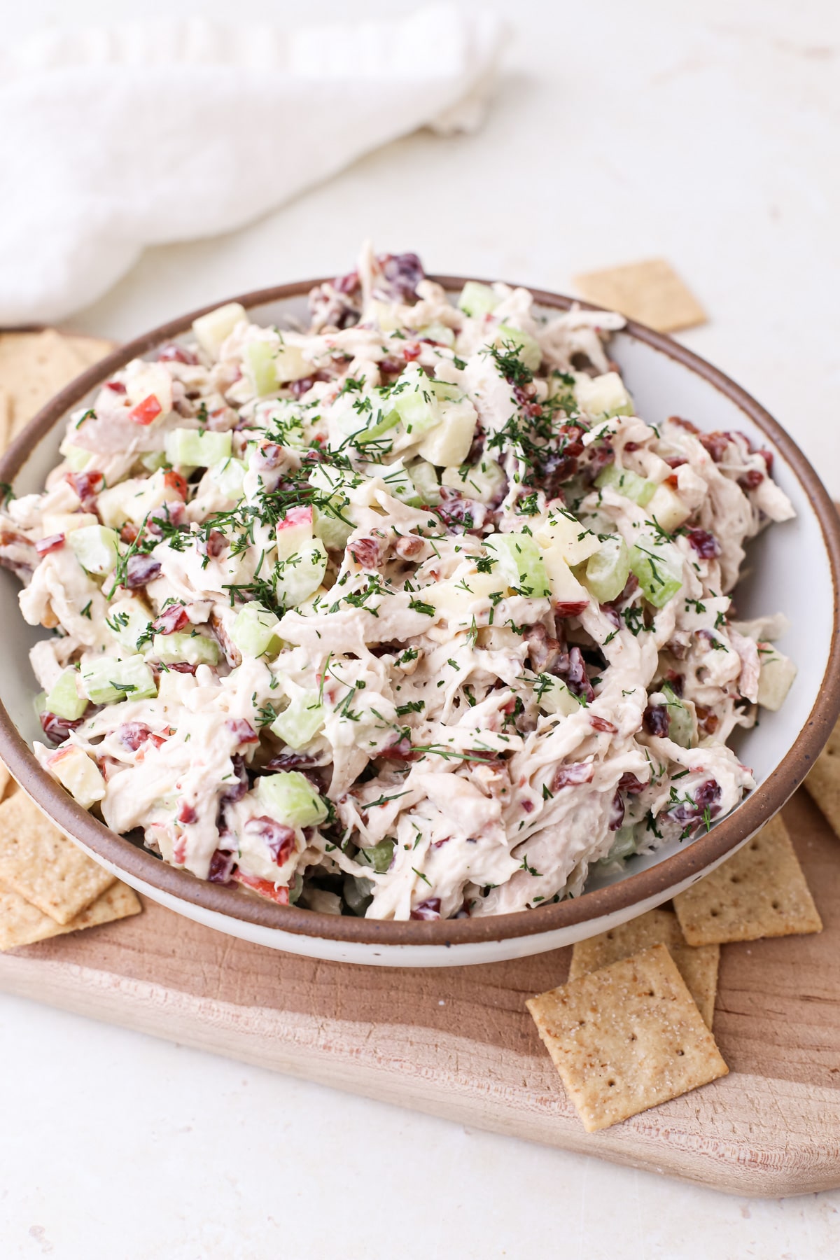 Cranberry pecan chicken salad is my go-to recipe for a quick and easy meal. It has shredded chicken, tart cranberries, crisp apples, crunchy celery in a creamy lemon dill dressing.
