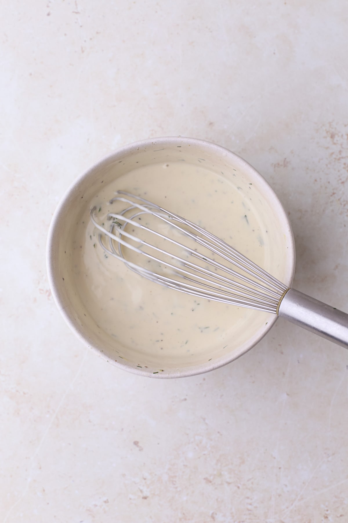 - Make dressing. In a small bowl, whisk together the dressing ingredients until smooth. Season to taste with kosher salt, freshly ground black pepper, or more lemon juice as needed.