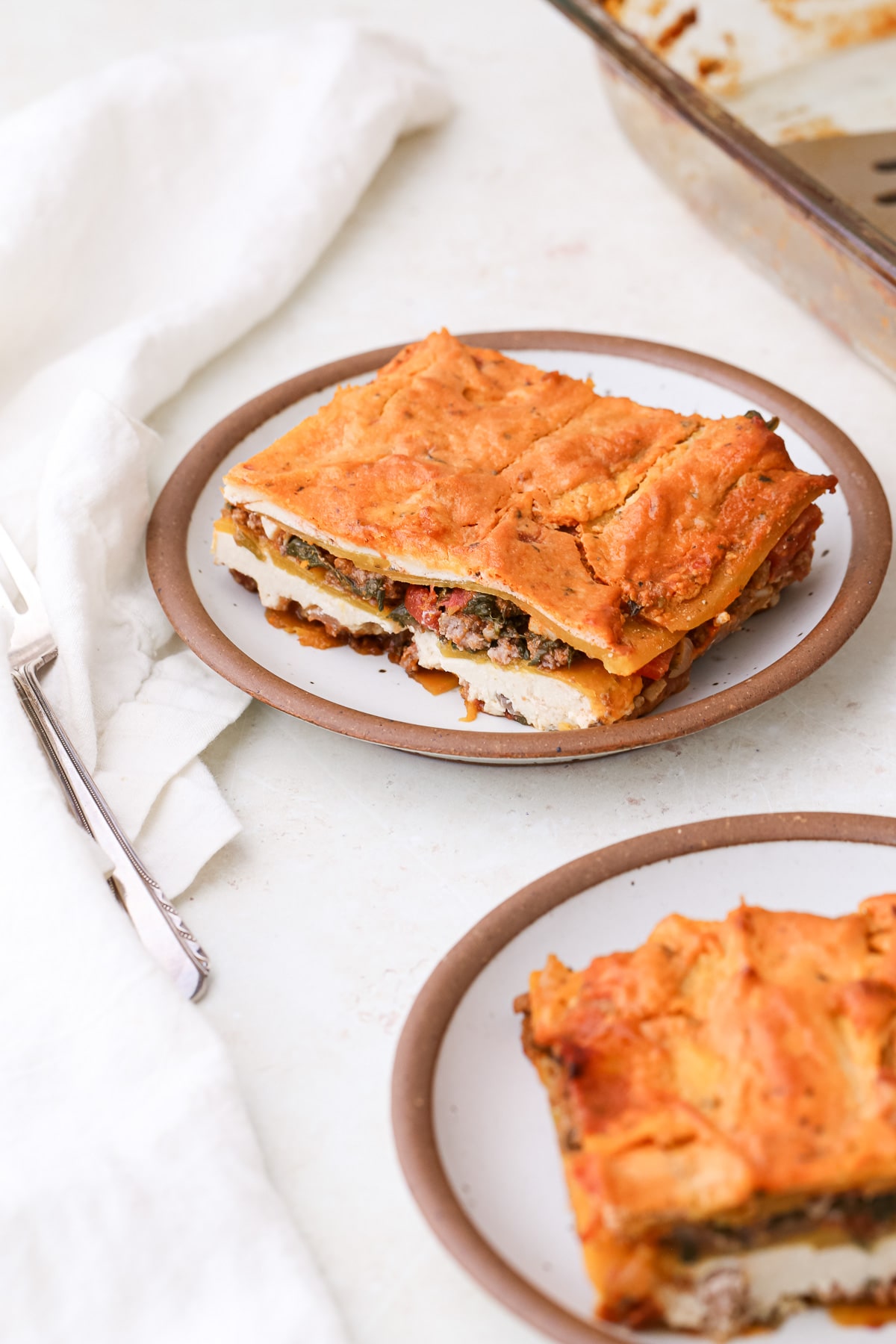 Dairy free lasagna is a vegetable-forward dish with butternut squash noodles, and cashew ricotta. Although it’s gluten free and dairy free (with a plant based option), the whole family will love this incredibly delicious lasagna.