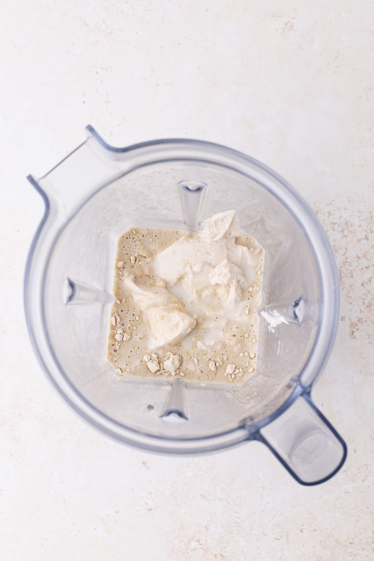 - Make the base. Add the protein powder, milk of choice, yogurt, and maple syrup to a blender. Blend until completely smooth.
