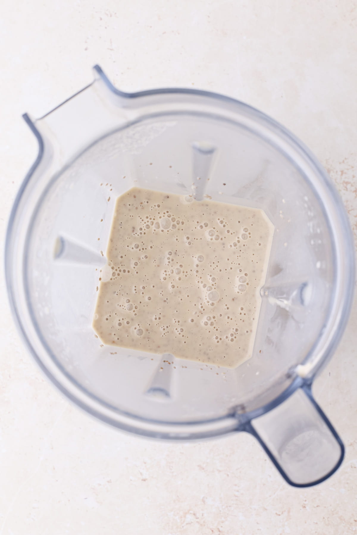 - Add chia seeds. Add in the chia seeds and pulse (don’t blend) a couple of times to incorporate them. Let sit for 5 minutes and pulse again to remove any clumps that may have formed.