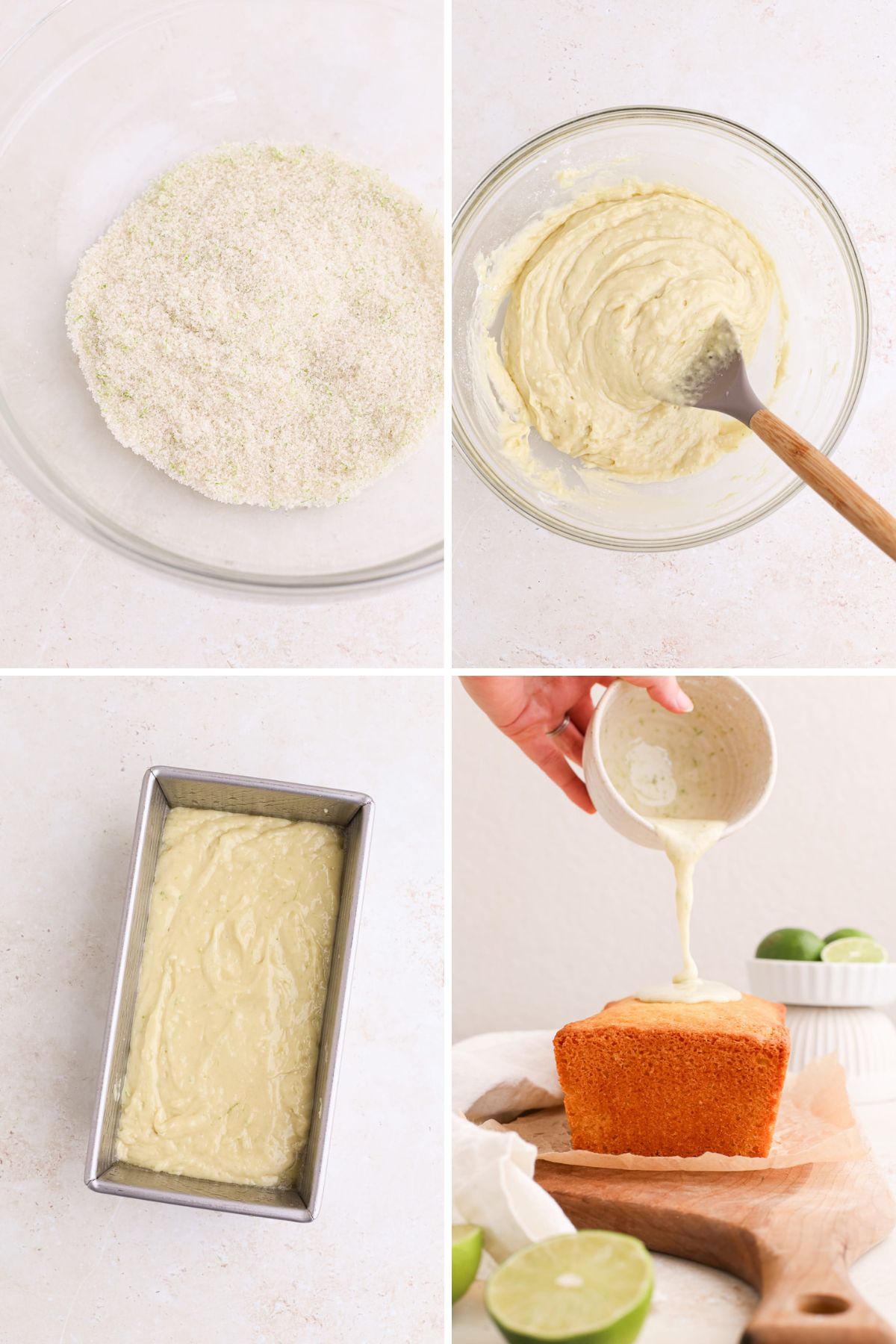 - Glaze. In a small bowl, whisk together the powdered sugar, lime zest, and lime juice. Thin with a little more lime juice if needed. When the loaf is nearly cool, drizzle it on top of the bread, slice and enjoy!