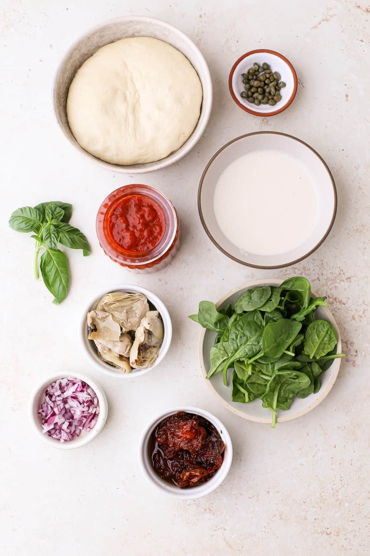 Here’s what you’ll need to make this mediterranean-style pizza: