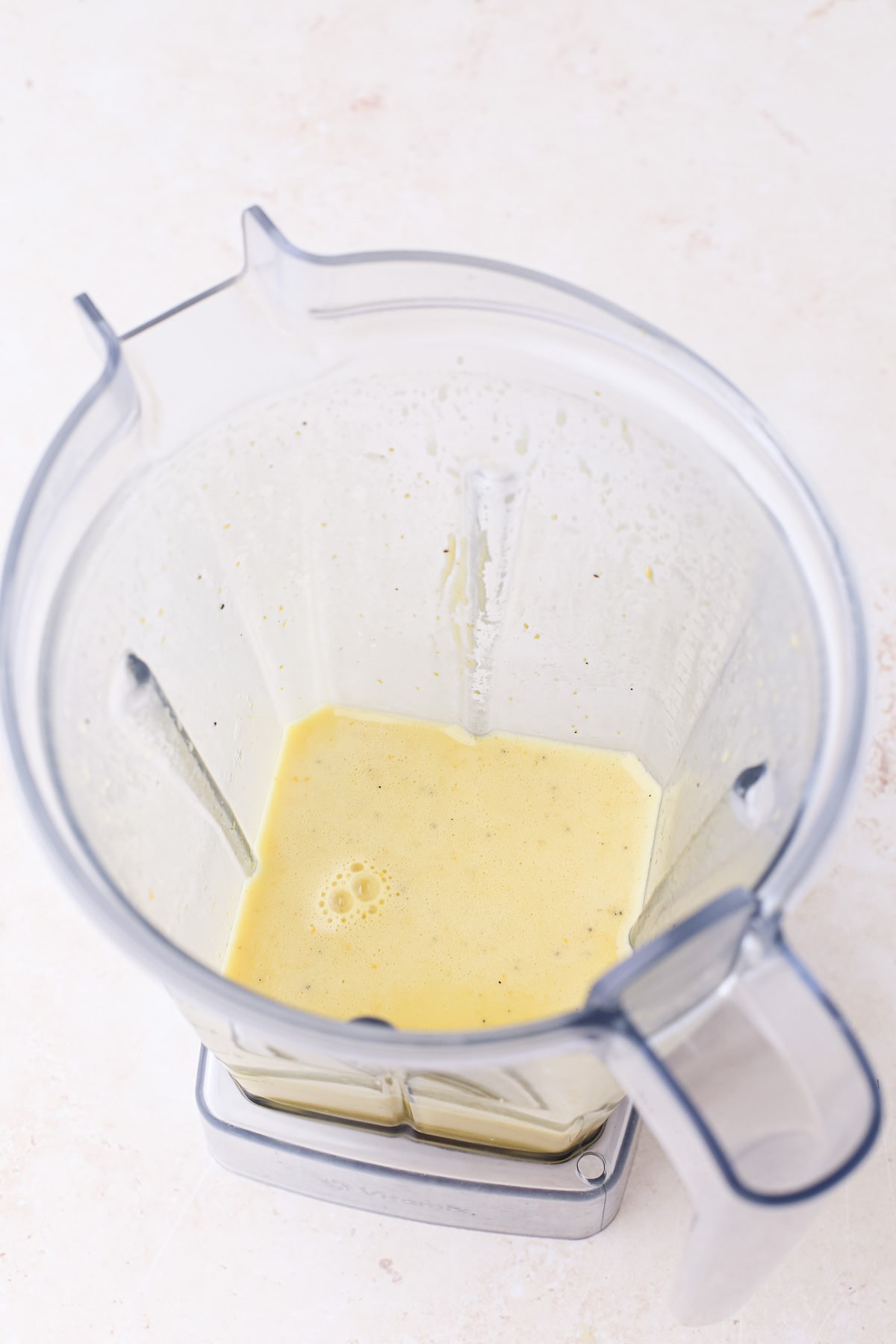 - Add all the ingredients to a blender. Blend on high until smooth and emulsified. Season to taste with kosher salt and freshly ground black pepper.