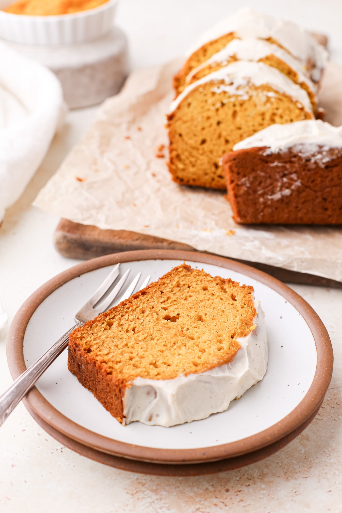 Quick Tip: If you’d prefer something sweeter, you can top the loaf cake with an orange pourable glaze: ½ cup powdered sugar, 2 teaspoons orange zest and 1 tablespoon orange juice. Or a cinnamon cream cheese frosting. It’s very customizable!