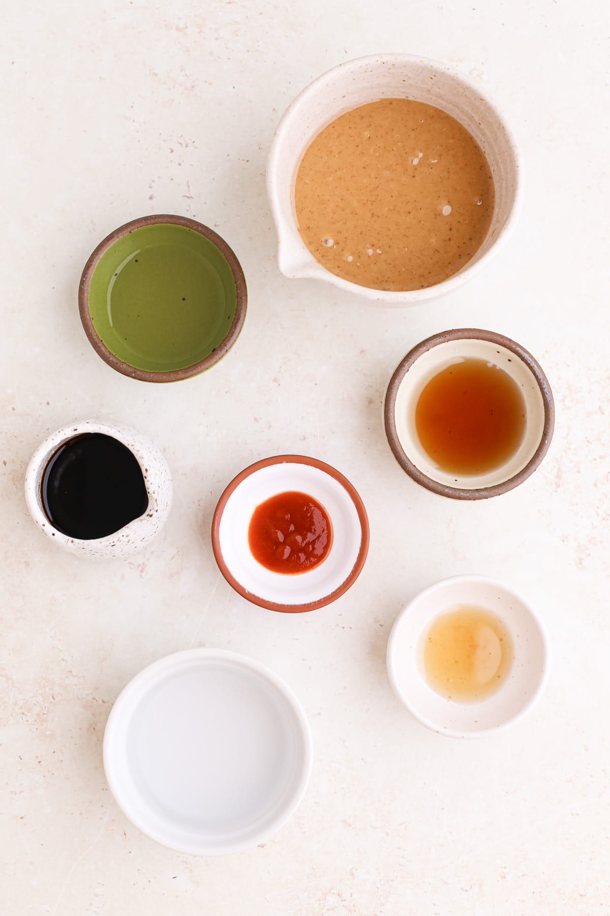 - Add all the sauce ingredients to a large bowl and whisk until smooth. Start with 5 tablespoons of hot water and add more as needed. Taste and add more acid, heat, or sweetener as needed.