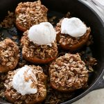 Each halved apple is like your own individual apple crisp. Because you really can’t go wrong when pairing apple, cinnamon, and brown sugar together, the flavor is incredible on its own. But a scoop of vanilla ice cream or cocowhip on top is always a good idea.