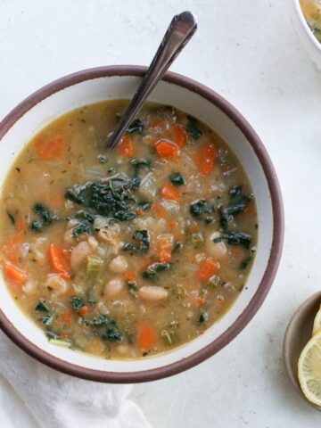 These buffalo chicken rice bowls are a quick, wholesome weeknight meal loaded with vegetables and tons of flavor. This recipe is dairy-free, gluten-free, and can easily be made vegan.