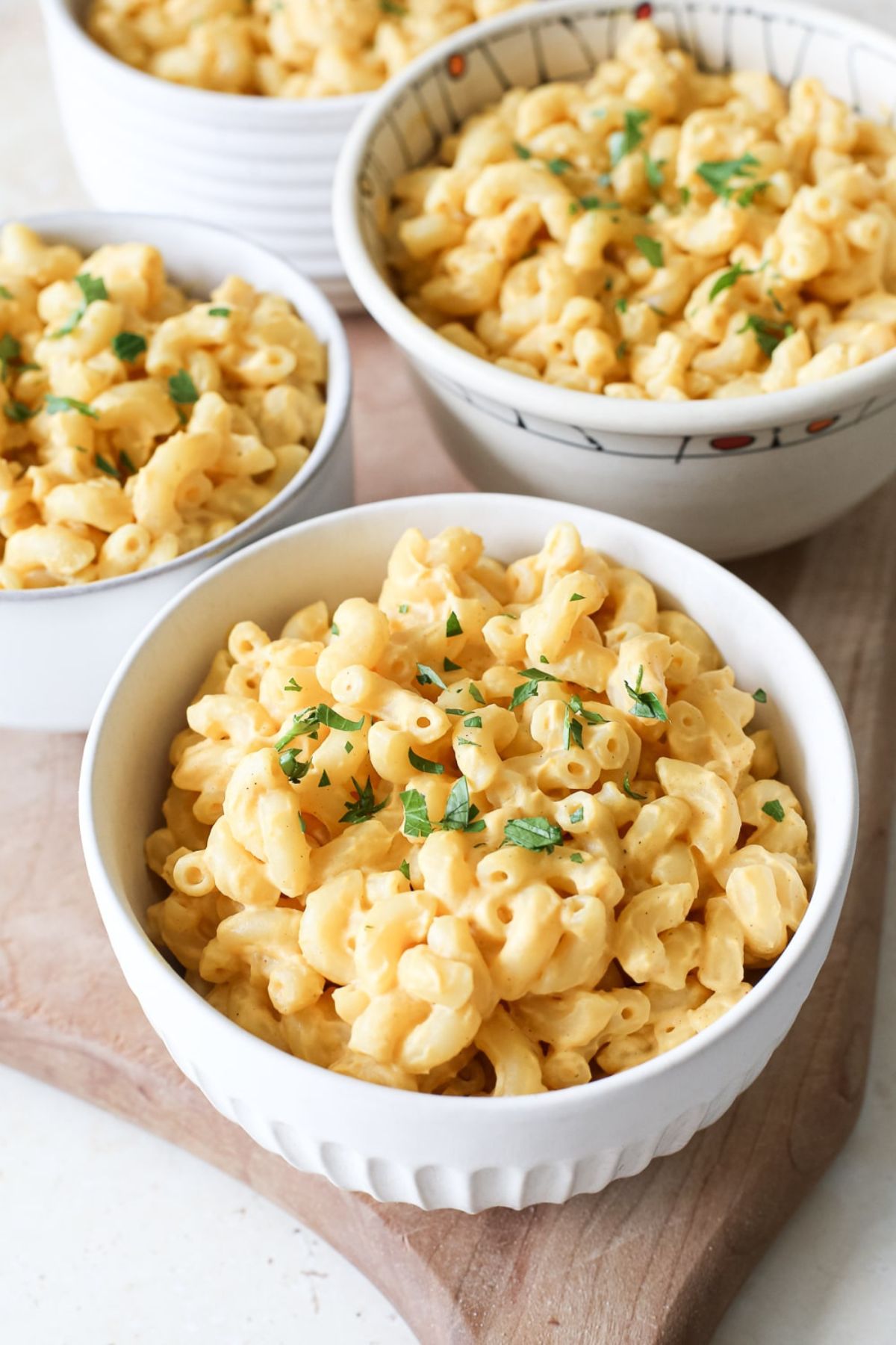 Absolutely killer! I had been looking forward to making this for a large group of people. Went to the grocery store with my list only to find no butternut squash. When I inquired about it, I was directed to some bagged, pre peeled, cubed squash. I wasnโt exactly excited by that but it was my only option. Turns out it worked perfectly well. And this pasta did not disappoint! Iโm delighted that I doubled the recipe and I have some leftover to relive the taste. I followed Lindseyโs suggestion of keeping the sauce and the pasta separate and it heated really well when I combined them just before placing them in the microwave. Thanks for another incredible recipe! And by the way, I am not vegan but prefer this to โregularโ Mac and cheese!!